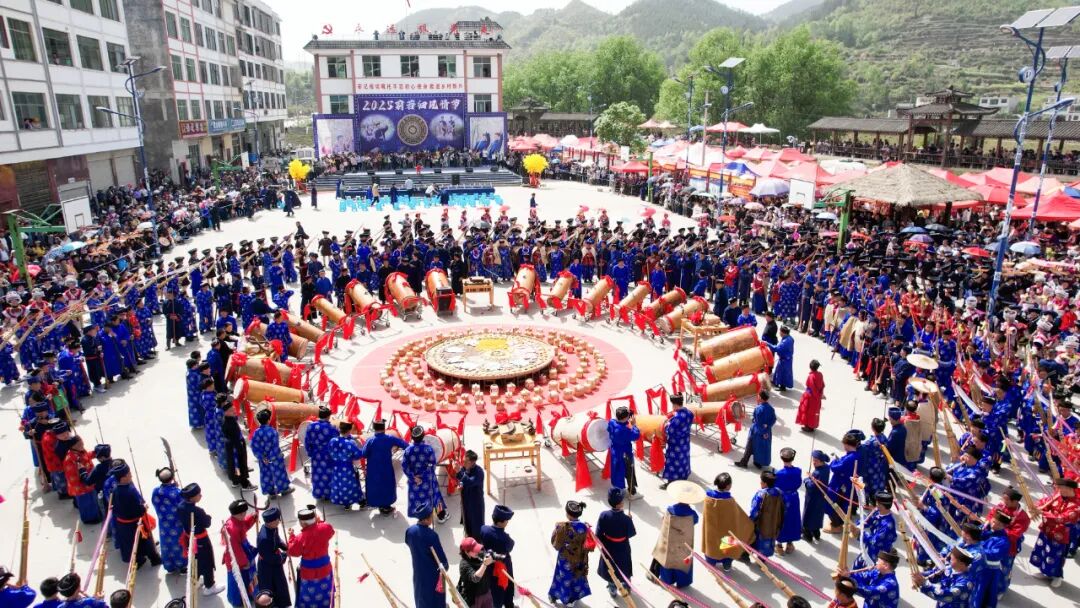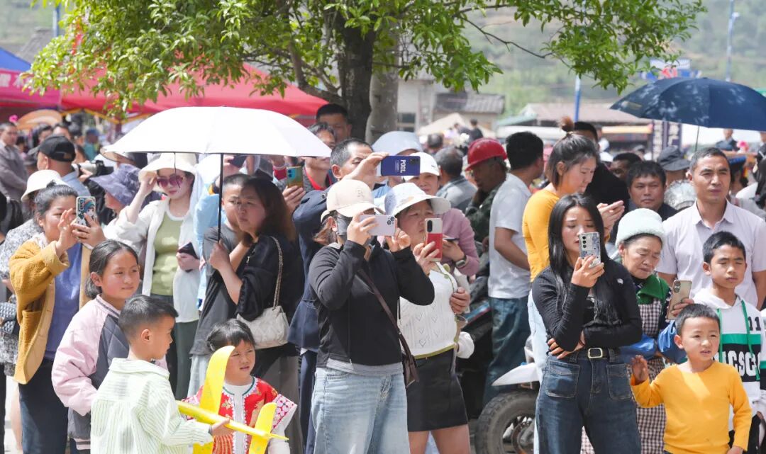 大号方阵、牛角方阵、芦笙方阵、背扇方阵等11个方阵一一亮相,形成一道道靓丽的风景线,游客们纷纷拿出手机记录每一个精彩瞬间。