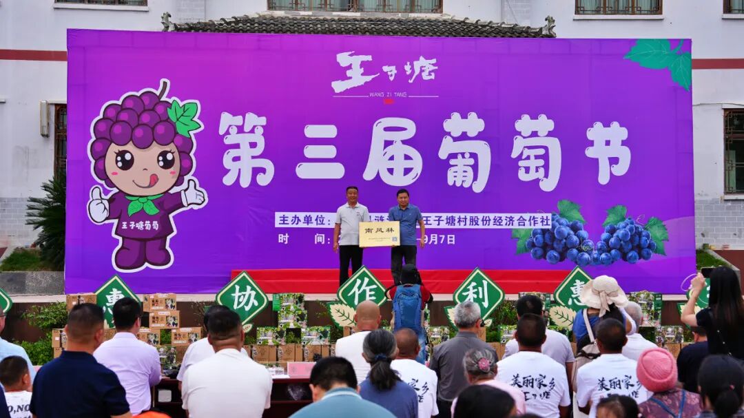 此次活动以葡萄为媒介、以节庆会友,既展现乡村特色产业成果,也为游客献上一场集采摘、游乐、体验于一体的田园盛会。开幕式上,贵州南风杂志社有限责任公司为王子塘村“南风林”生态基地授牌。