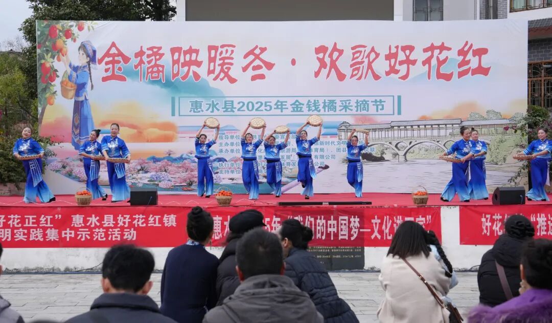 12月28日,惠水县2025年“金橘映暖冬·欢歌好花红”金钱橘采摘节在好花红镇好花红村正式启幕。