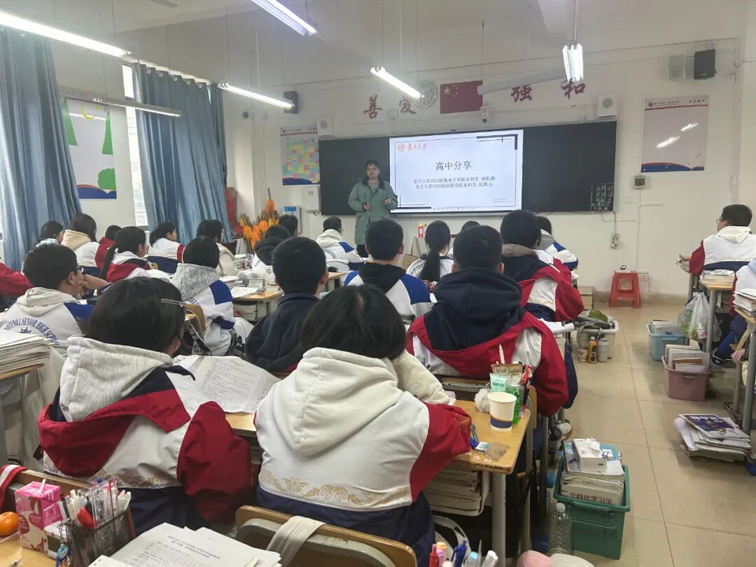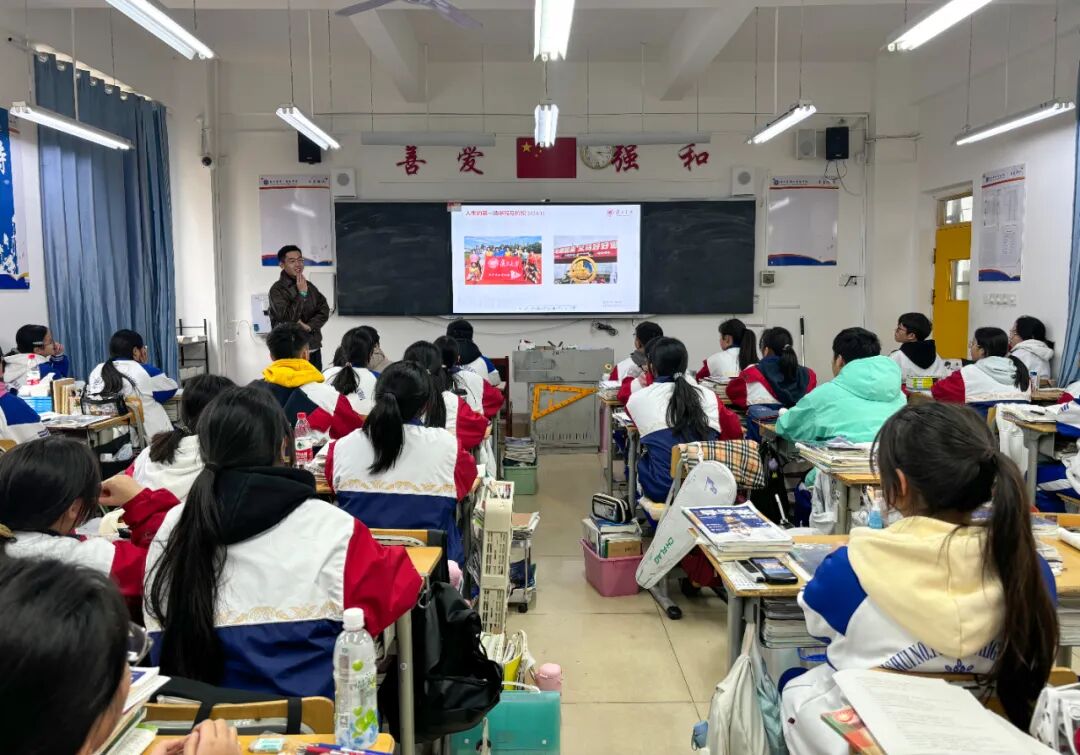 复旦大学学子们根据每个学校孩子的特点,用亲身经历讲述一个个生动鲜活的故事。从小学懵懂的求知初期到高中紧张的课业节奏,那些挑灯夜战的奋斗、参加社团活动的精彩以及学术探索的奇妙,如同点点繁星,照亮了山区孩子心中对未来的憧憬。孩子们聚精会神地聆听,感受求学之路的广阔,眼中充满了好奇与向往。