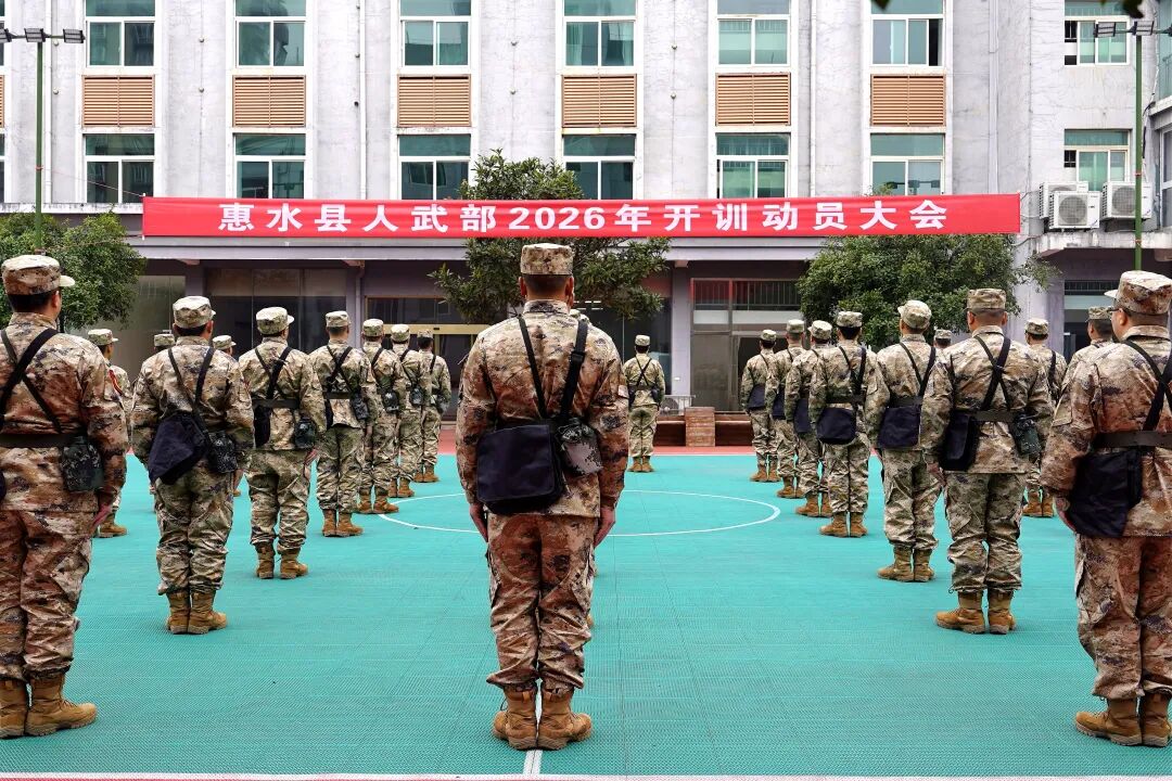 1月9日,惠水县人民武装部举行2026年度开训动员会,全体官兵、基干民兵以严整的军容、昂扬的军姿迎接新年度军事训练任务,正式拉开实战化练兵序幕。