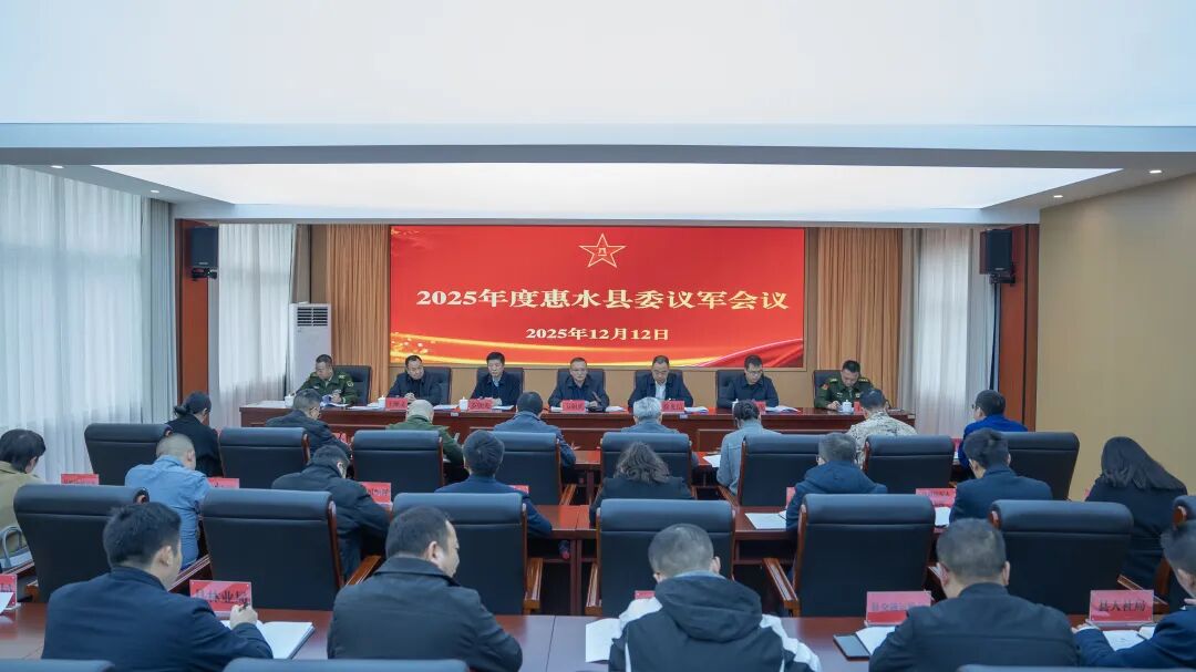 12月12日,2025年度惠水县委议军会议在县人民武装部召开。会议强调,要深入学习贯彻习近平强军思想,认真贯彻落实党的二十届四中全会精神和习近平总书记在贵州考察时的重要讲话精神,更好推动全县国防动员和后备力量建设高质量发展。