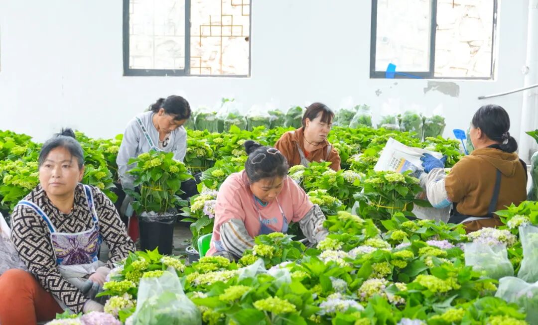 绣球花产业的繁荣,还带动了当地村民增收致富。村民在景区内从事养护、打包、种苗等工作,平均每天都有200人在各区域工作。