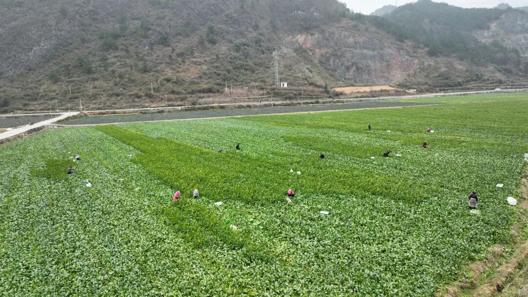 冬日的惠水大地,田畴铺绿、生机盎然。在摆金镇的蔬菜种植基地里,20余名采摘工人弯腰穿梭于整齐的菜垄间,指尖翻飞处,一把把鲜嫩欲滴的菜心被快速采收、整齐码入篮中。满载新鲜蔬菜的三轮车往来穿梭于菜地与分拣车间,机器轰鸣声、工人笑语声交织成一曲丰收的乐章。